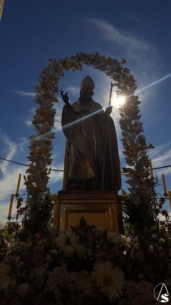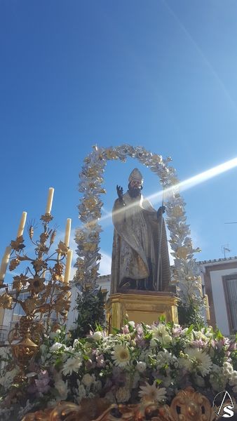 El Excelentísimo Ayuntamiento, presidido por su alcalde, D. Ignacio Escañuela Romana, la Teniente de Alcalde y demás miembros de la Corporación municipal recibieron la imagen del Patrón del pueblo y Titular de su Parroquia a las puertas del Consistorio y le ofrecieron un ramo de flores.
