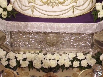 Cuenta con bordados del taller de Benjamín Pérez de Bollullos de la Mitación y orfebrería del taller de Antonio Santos de Sevilla. Todos los componentes de este paso estuvieron expuestos en la Casa de la Cultura de Castilleja de la Cuesta durante el mes de enero.