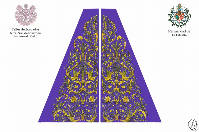 Arte Sacro. María Santísima de la Estrella contará a partir del último trimestre de este año con un nuevo manto de camarín. La pieza, de cuatro metros y medio de ancho y tres de largo, será bordada en oro fino sobre terciopelo azul marino por el taller de bordados Nuestra Señora del Carmen de la localidad gaditana de San Fernando.