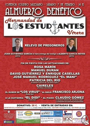 Fran Granado. La Hermandad de los estudiantes de Utrera organiza por segundo año consecutivo, el II Almuerzo Benéfico Relevo de Pregoneros de la Semana Santa.