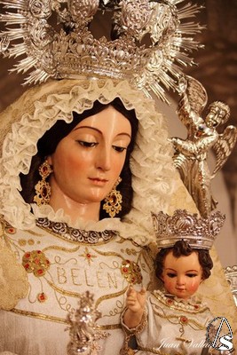 Arte Sacro. Siguiendo con los cultos a la Madre de Dios de Belén Coronada, el sábado 14 de febrero descenderá de su camarín para quedar expuesta en Besamanos, a las 19:30h en la celebración de la Santa Misa en la Ermita de Belén entonándose por el pueblo la Salve Regina y cantos a la Virgen mientras repican las campanas.