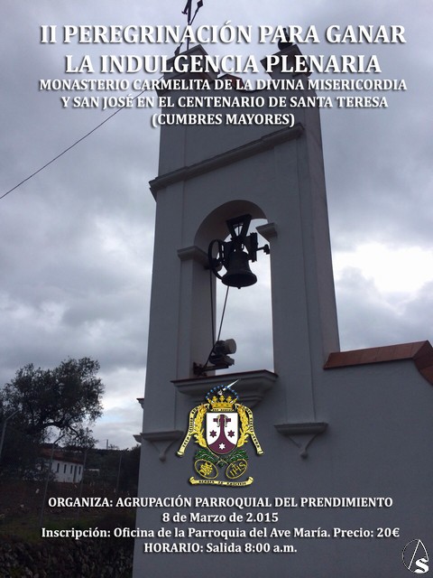 Arte Sacro. La Agrupación Parroquial del Prendimiento de Dos Hermanas organiza el próximo 8 de marzo la II Peregrinación para ganar la indulgencia plenaria, siendo esta vez al Monasterio Carmelita de la Divina Misericordia y San José en el centenario de Santa Teresa (Cumbres Mayores).