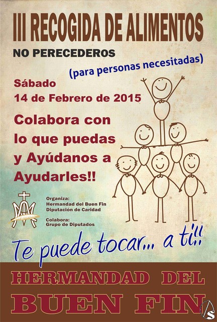 Arte Sacro. Hoy sábado día 14 de febrero por la mañana la Hermandad del Buen Fin va a realizar bajo la propuesta del diputado de Caridad y organizado por el grupo de diputados una nueva campaña de recogida de alimentos.