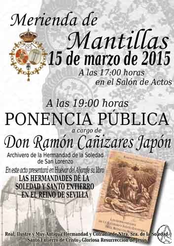 El acto, organizado por la Real, Ilustre y Muy Antigua Hermandad y Cofradía de Nuestra Señora de la Soledad, Santo Entierro de Cristo y Gloriosa Resurrección de Jesús, se completará tras la tradicional merienda de mantillas con una ponencia pública en la que D. Ramón Cañizares ofrecerá datos reveladores fruto del estudio detallado de las más de ciento cincuenta y cinco Hermandades tituladas y conocidas bajo la advocación de Nuestra Señora de la Soledad desde que comenzara hace cinco siglos -a mediados del siglo XVI- la celebración de la Semana Santa tal y como perdura hasta nuestros días. Un hermoso viaje, en definitiva, por el “singular fenómeno de la universal devoción soleana”, como así describe magistralmente D. Ignacio Montaño Jiménez, Hermano de Honor de la Hermandad de la Soledad de Alcalá del Río, en el prólogo de la obra.