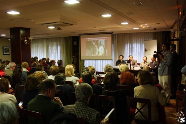 Arte Sacro. El salón de actos del Centro Cultural de los Ejércitos se ha llenado para seguir la presentación del libro ‘El Cristo de la Humildad y Paciencia, arte e iconografía’, a cargo de uno de sus autores, el profesor del CEU Cardenal Spínola, Fernando Gabardón.