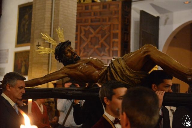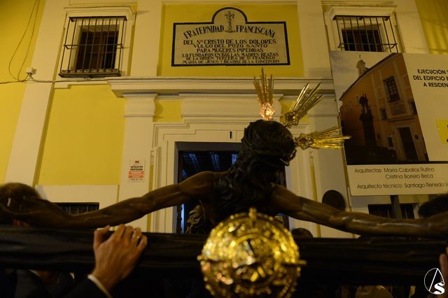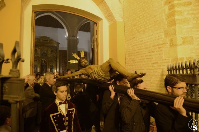 El Vía Crucis se inició al término de la misa, sobre las 19,30 horas, con el siguiente recorrido: Plaza de San Martín, Cervantes, Plaza de San Andrés, Daóiz, Parroquia de San Andrés, Daóiz, Orfila, Capilla de San Andrés, José Gestoso, Plaza de Zurbarán, Misericordia, Plaza del Pozo Santo, Amparo, Capilla de la Divina Pastora, Viriato y Plaza de San Martín, estando la entrada prevista sobre las 22 horas.
