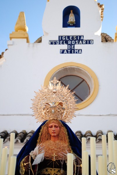 Esta procesión de vísperas, comenzará desde la iglesia de Fátima con el siguiente recorrido: Salida (18:30 h), Travesía de Fátima, Cádiz, Albarizuela, Puerta Ronda, Plaza Salitre, Mancilla, Maricadena, Fernando el Santo, Plaza Reyes Católicos, Solano de Luque, Hermanos Álvarez Quintero, Maestro Manuel Puro, María de la Cueva y entrada al templo sobre las 22:00 h.