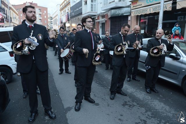 Los costaleros fueron al mando de Luismi Fajardo auxiliado con su equipo de capataces y los sones musicales de la procesión estuvieron a cargo de la banda de música Ntra. Sra. de las Nieves, de la localidad de Olivares, que interpretó un variado repertorio de marchas procesionales.