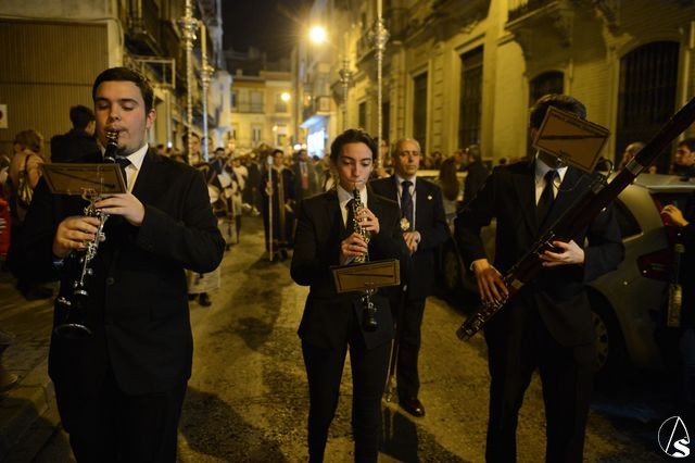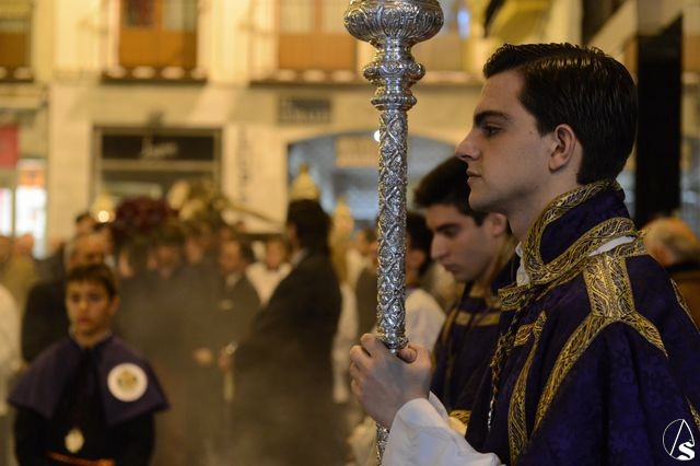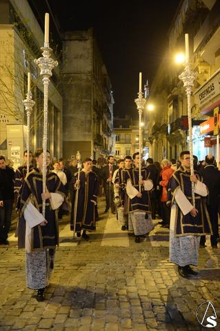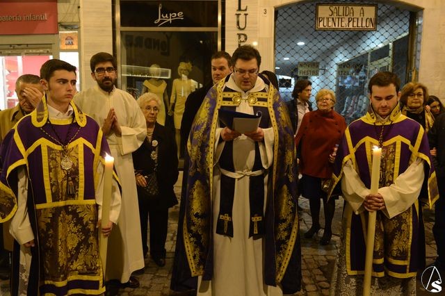 El director espiritual Florencio Fernández, dirigió los rezos de las estaciones del Vía Crucis, que se hicieron por las calles Orfila, Cuna, Cerrajería, Sierpes y Campana, recorrido previsto para este ejercicio piadoso.