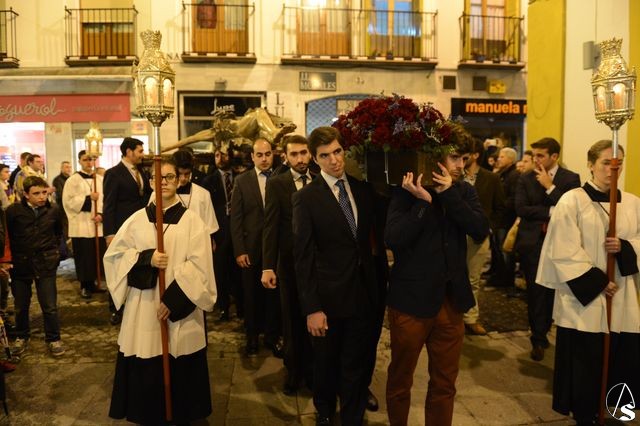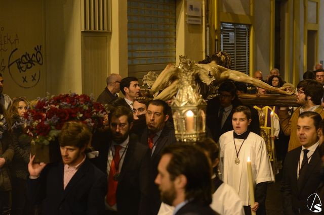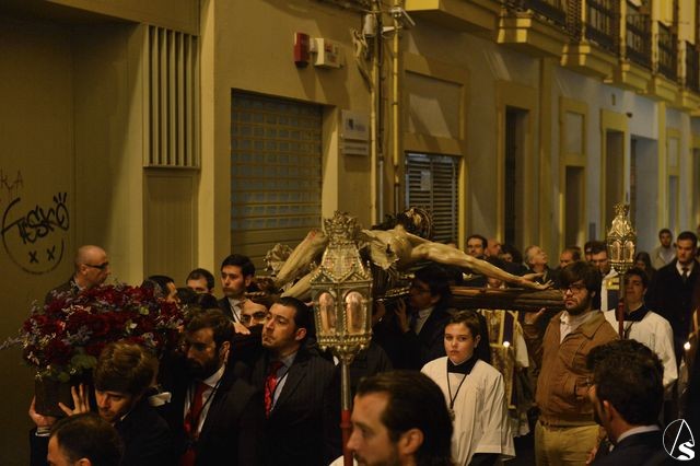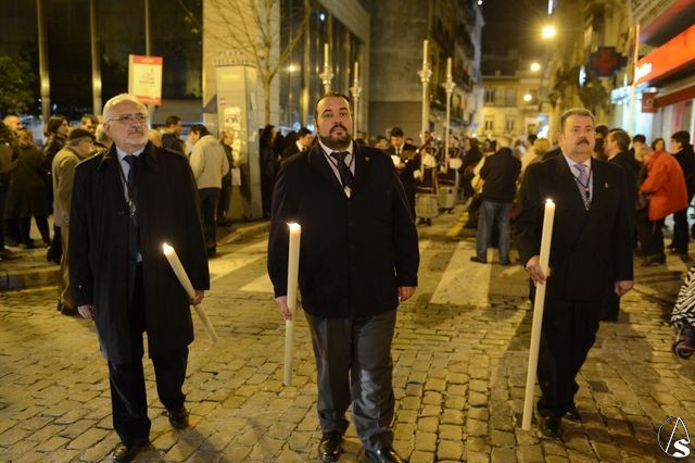 Daniel García Acevedo. El Stmo. Cristo del Perdón presidió el Vía Crucis que la hermandad de los Panaderos efectuó en la noche de ayer sábado, 21 de marzo y que transcurrió por las calles del centro de la ciudad.