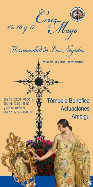 Arte Sacro. Les informamos que la Hermandad de los Negritos celebrará su Cruz de Mayo durante los días 15 al 17 de mayo en el patio de la casa- hermandad