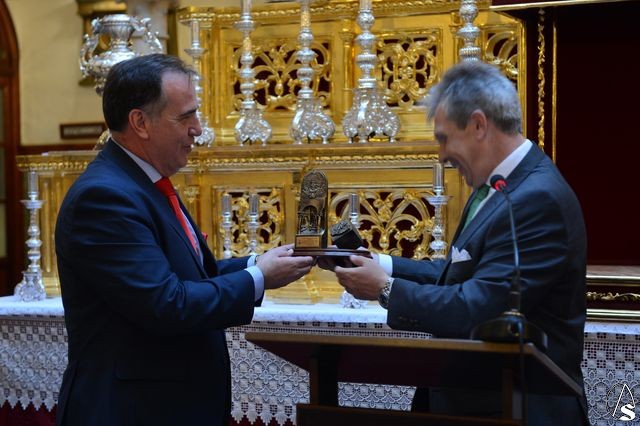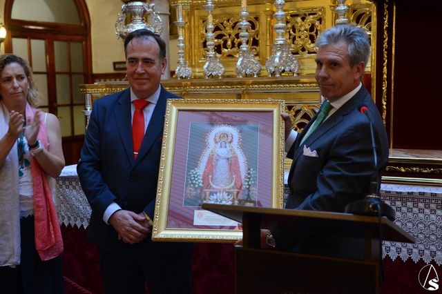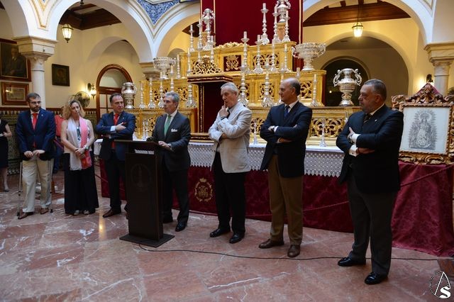 En el acto intervinieron, por parte del Mercantil su vicepresidente, José María Gonzalez Mesa, el hermano mayor de la corporación rosariera, el comisario de la muestra y una representación del ayuntamiento de Mairena del Aljarafe.