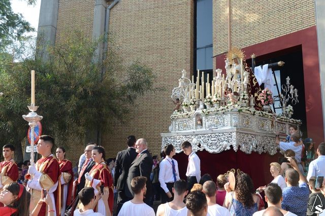 Daniel García Acevedo. Ayer sábado, 30 de mayo, el barrio de Alcosa vivió uno de sus días más importantes del año con la procesión de la Virgen de los Desamparados, desde la parroquia del mismo nombre.