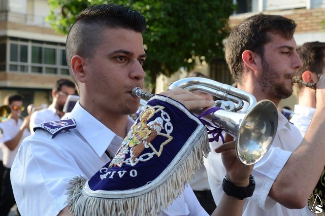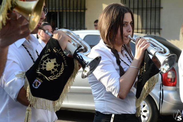 El acompañamiento musical estuvo a cargo de la banda de música municipal de Mairena del Alcor, tras el paso de la Stma. Virgen y abriendo el cortejo la banda de cornetas y tambores Pasión de Cristo, hermana honoraria de esta corporación y que por su VIII aniversario ha celebrado una jornada de puertas abiertas, invitando a formaciones musicales de todo el territorio nacional e invitándoles a participar con ellos de esta procesión, figurando componentes de otras bandas en las filas de Pasión de Cristo y varios banderines junto con el de la formación de Alcosa.