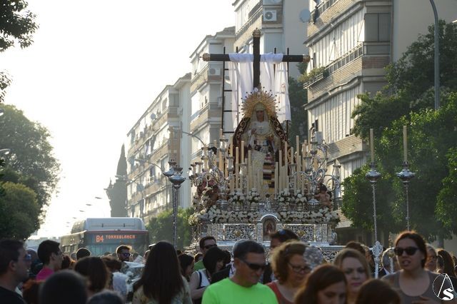 El cortejo comenzó a salir a las 19 horas y en el mismo figuraron representaciones de las hermandades de San José Obrero, Candelaria Madre de Dios, Carmen de Calatrava y la vecina hermandad del Divino Perdón, entre otras. La Virgen lució radiante gracias a las manos de su vestidor, Antonio Bejarano.