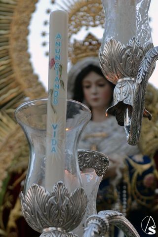 La Virgen, perfectamente ataviada por José Antonio Grande de León, llevó en uno de los cirios de guardabrisa, un codal por los donantes de órganos, pintado por el hermano Fernando Castejón que, además, iba de fiscal del paso.