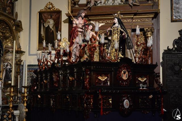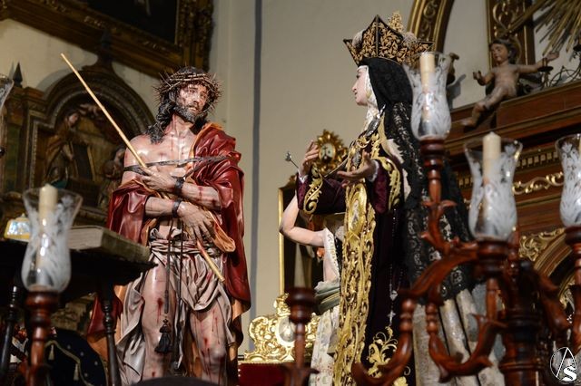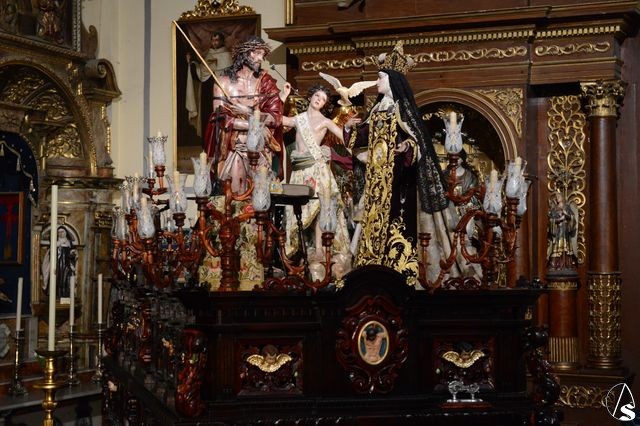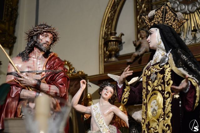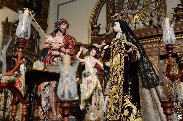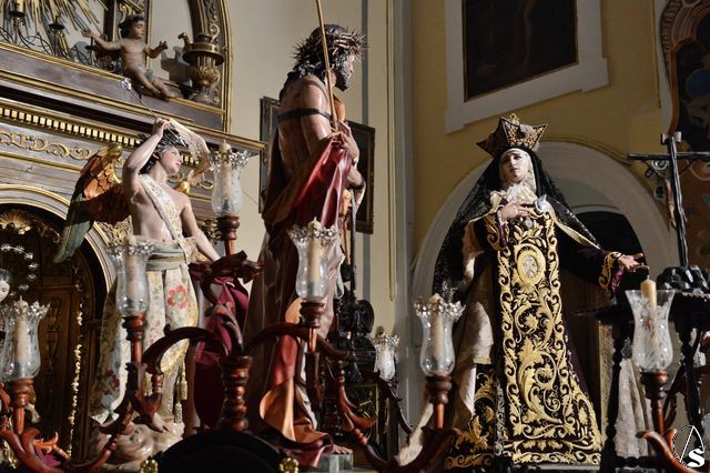 Para ello se ha montado un paso de misterio teresiano con tres magníficas tallas del imaginero cordobés Francisco Romero Zafra. Las imágenes de la Santa y el ángel ya son conocidas en la ciudad, pero destaca la presencia de la excepcional talla del Eccehomo que antes de llegar a Valladolid, va a procesionar por las calles de Sevilla.