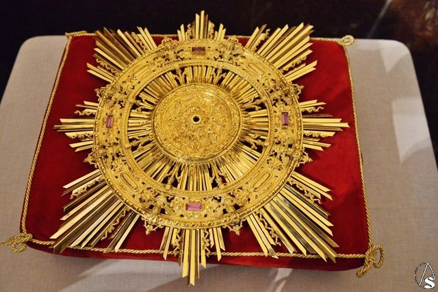 Esta aureola fue contratada con el orfebre Ramón León el 9 de septiembre de 2009, siendo hermano mayor Antonio Fonseca. Es ahora cuando se ha hecho realidad, con las donaciones en oro de hermanos, devotos y feligreses, y con las actividades programas por la cofradía para poder recaudar el dinero total del encargo. La aureola fue llevada al altar por Guadalupe, viuda de Miguel Camacho, fallecido recientemente, y alma Mater de la hermandad durante muchísimos años. Guadalupe fue acompañada por Joaquín Pérez, actual hermano mayor. La bendición e imposición de la misma estuvo a cargo del párroco y director espiritual, Ángel Sánchez Solís.