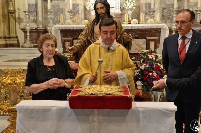 Este acto tuvo lugar al finalizar la santa misa, en la que se impusieron las medallas a los nuevos hermanos de la corporación letífica, en los que encontramos, como curiosidad, a Pepe Cataluña, miembro de junta de gobierno de la Sed y candidato a hermano mayor de esta hermandad.