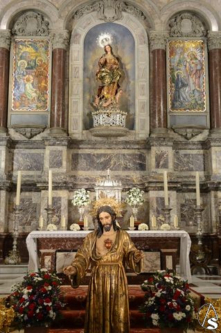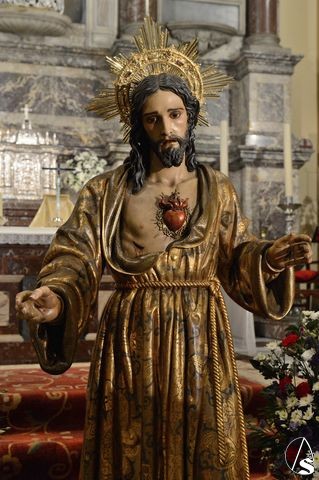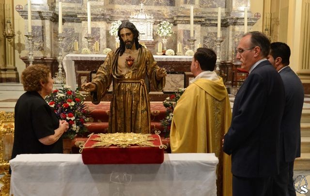 Daniel García Acevedo. Ayer viernes, 12 de junio, y coincidiendo con la solemnidad del Sagrado Corazón de Jesús, la cofradía de esta advocación del barrio de Nervión, realizó el acto de bendición e imposición de la nueva aureola para el Señor.