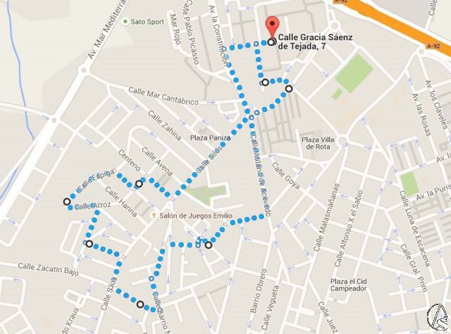 A las 21:30 horas se realizará la salida extraordinaria en paso hasta las 2:30 horas aproximadamente, que realizará la entrada. El recorrido es: Gracia Sáenz de Tejada, Dr. Marañón, Ramón J. Sender, Sanlúcar la Mayor, Silos, Centeno, Cereales, Maíz, Espiga, Arroz, Jesús Guridi, Juan Luis Vives, Silos, Zacatín, Barrio Nuevo, Manuel García Moreno, Enrique Pozo Chacón, Compositor Manuel García, Juan Moya García, Velázquez, Atilano de Acevedo, Av. la Constitución, Gracia Sáenz de Tejada.