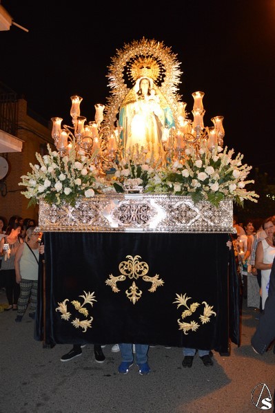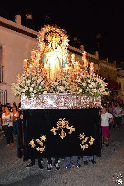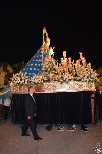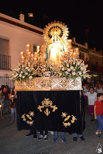 La procesión discurre por numerosas calles, paseando la Santísima Virgen de un extremo a otro del pueblo. Emotiva fue la llegada a la Capilla de la Virgen del Rosario donde fue recibida con plegarais cantadas desde el interior del Templo. Grande es la devoción del pueblo de Alcolea del Río por su Patrona, siendo cientos de personas que de promesa y con un cirio en la mano estuvieron junto al Consuelo de María en la noche del 8 de septiembre.