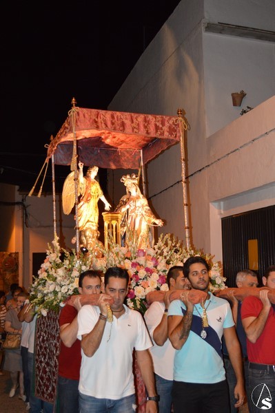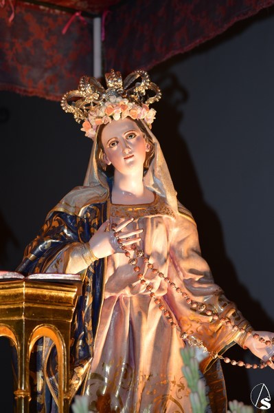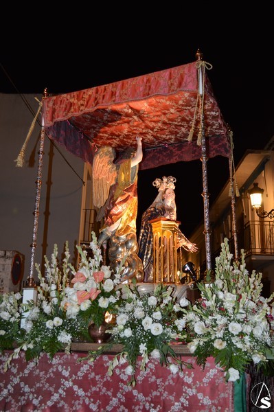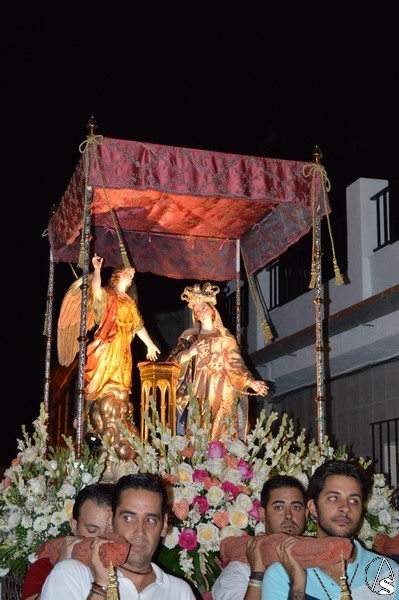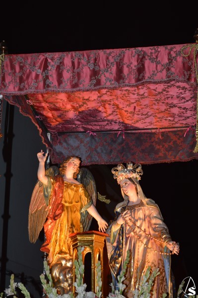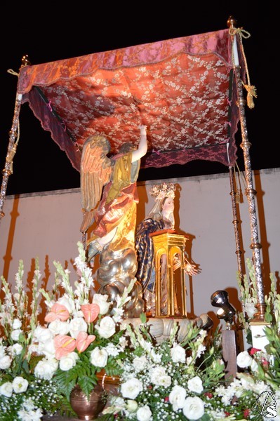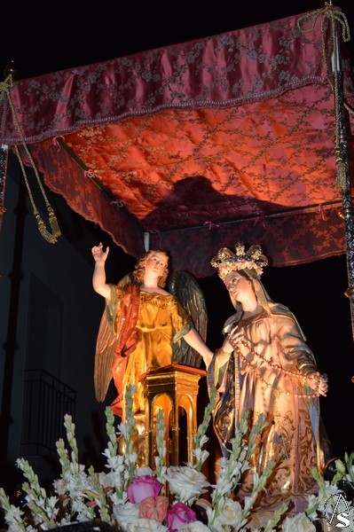La talla mariana es venerada en su Ermita enclavada en la calle San Pedro. La Eucaristía previa a la procesión se celebra en un patio que antecede a la bella Ermita. Nuestra Señora de la Encarnación procesiona bajo palio de tonos rojos sujeto por cuatro varales en sus esquinas. Exornan el paso distintos tipos de flores donde predominan los nardos y las rosas blancas.