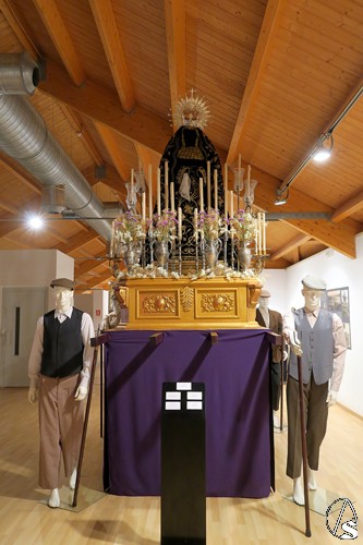 La Exposición, colocada en la sala superior del Museo, estaba estructurada en varias zonas, siguiendo un poco los espacios cronológicos de la Hermandad, desde el origen de la advocación de la Virgen del Perpetuo Socorro, hasta la primera imagen que tuvo la Hermandad. En este espacio, lo más espectacular e impactante, resultaba ser el antiguo “paso de monte”, recreado con los muchos elementos antiguos que aún se conservan y completado hasta conseguir su reproducción fiel. Paso que era llevado por horquilleros hasta el calvario, como se aprecia en las muchas fotografías que así lo atestiguan. Sólo por esto, ya la Exposición merece ser visitada, pues nos retrotrae a siglos pasados.