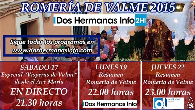 Arte Sacro. Dos Hermanas Info realizará un amplio despliegue informativo para llevar la Romería de Valme 2015 a todos los rincones del mundo. Tras el éxito del anterior año el especial es ampliado con más horas de programación sobre el acontecimiento más importante del año para la ciudad nazarena.