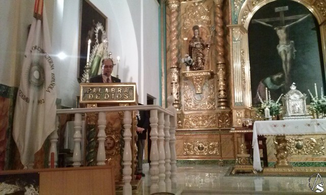En efecto, en el transcurso de la Santa Misa, oficiada por el Rvdo. Sr. D. Antonio J. Guerra, Arcipreste de la ciudad, se realizó esta entrega de diplomas que los acredita como adoradores de Jesús Sacramentado (Hermanos de Honor de esta Sección Adoradora del Santísimo Sacramento), al haber encarnado a los personajes evangélicos que fueron los primeros adoradores: dejándolo todo corrieron a adorar al Niño Dios, que, aunque han pasado más de dos mil años, es el mismo que los adoradores actuales veneran en la custodia, bajo la apariencia del Pan, apariencia en la que quiso quedarse entre nosotros hasta la consumación de los tiempos.