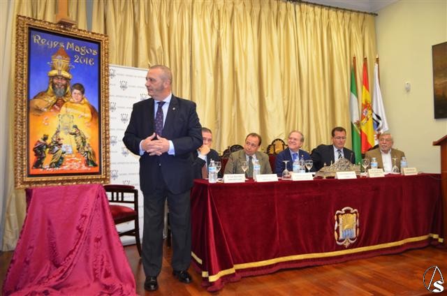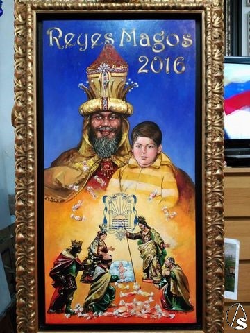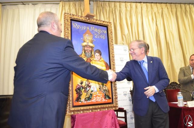 Arte Sacro. Ayer viernes, 20 de noviembre, el artista Luis Rizo, junto al presidente del Ateneo de Sevilla, Alberto Máximo Pérez Calero, y el delegado de Fiestas Mayores del Ayto. de Sevilla, Juan Carlos Cabrera, han descubierto oficialmente el cartel de la Cabalgata de Reyes Magos del Excmo. Ateneo de Sevilla, ante decenas de testigos. “He querido hacer un homenaje a La Roldana figura tan desconocida y para ello he elegido uno de sus Nacimientos con la anunciación y la adoración de los magos”, ha dicho el autor del cartel, Luis Rizo. Además, entre los símbolos destacables "los caramelos que representan a la cabalgata, el escudo del Ateneo en el centro que contextualiza al cartel en Sevilla y la mítica imagen de un rey mago con el niño ilusionado", ha dicho el artista sevillano. "El niño es mi hijo cuando tenía cuatro años y el rey mago no está inspirado en nadie, aunque su corona sí que es la corona que en la actualidad viste el Rey Gaspar la tarde del 5 de enero en la cabalgata sevillana". En esta dirección, Antonio Zambrana Lara, artista, catedrático de pintura en la Universidad de Sevilla, y presidente de la Sección de Bellas Artes del Ateneo ha dicho que "Luis Rizo es uno de los últimos pintores del barroco sevillano, con un uso del color de Sevilla extraordinario. Ocres, azul o verde". Colores que en el cartel de la cabalgata están muy presentes “sobre todo el amarillo y el azul”, ha dicho Luis Rizo.