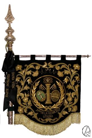 Arte Sacro. Las Bandas de CC y TT de Ntra. Sra. de la Victoria (las Cigarreras) y la del Stmo. Cristo de las Tres Caídas de Triana han decidido apoyar las donaciones de órganos llevando en sus banderines un lazo con el mensaje “Hazte Donante – Dona vida”.