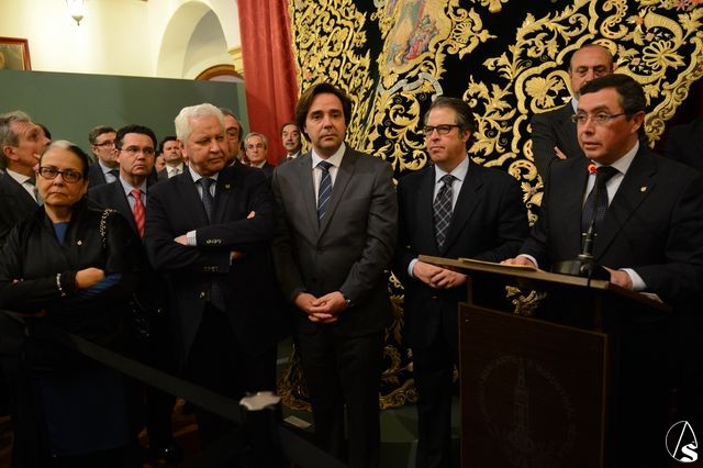 Al acto de inauguración asistió además de la Junta Directiva del Círculo Mercantil con su presidente, Práxedes Sánchez a la cabeza, una amplia representación de autoridades de la ciudad. El General subdirector de enseñanza del Ejército del Aire Lucas Manuel Muñoz; el Teniente de Alcalde, delegado de Fiestas Mayores, Seguridad y Movilidad y presidente del Distrito Casco Antiguo del Ayuntamiento de Sevilla, Juan Carlos Cabrera, el alcalde del Ayuntamiento de Estepa Salvador Martín, los concejales del grupo popular Gregorio Serrano y Curro Pérez, el Comandante Naval, José Ramón Fernández de Mesa y Temboury, el Cónsul de Portugal, Jorge Monteiro, delegado diocesano del Apostolado Seglar Enrique Belloso y el presidente del Consejo General de Hermandades y Cofradías Carlos Bourrelier y miembros de su Junta General así como hermanos mayores de todas las corporaciones que han expuesto en estos diez años de Círculo de Pasión en la Entidad.