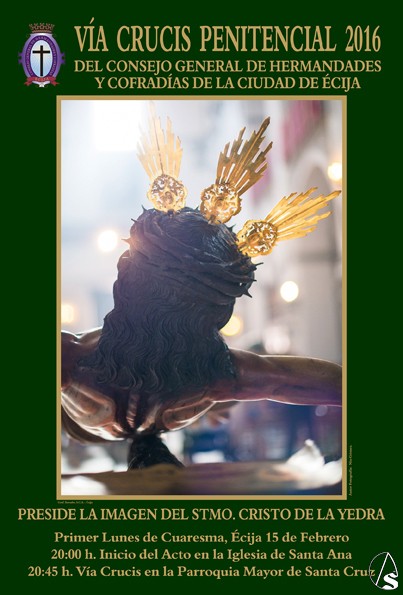 Fran Granado. A punto de iniciar ya la Cuaresma 2016, el Vía Crucis del Consejo General de Hermandades y Cofradías de Écija se celebra el próximo lunes día 15 de febrero, como Primer Lunes de Cuaresma.