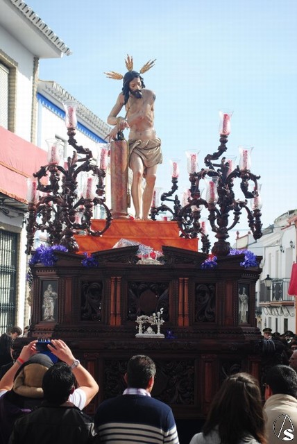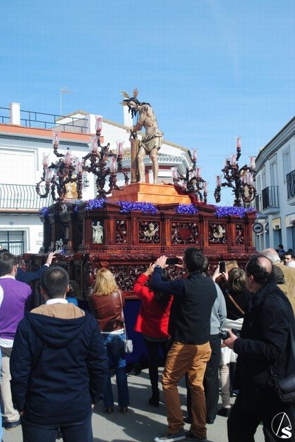 Eduardo Fdez. López. El pasado domingo 7 de febrero muchos sevillanos nos desplazamos hasta la vecina localdiad onubense de Hinojos, allí procesionaba de manera extraordinaria Nuestro Padre Jesús Atado a la Columna.