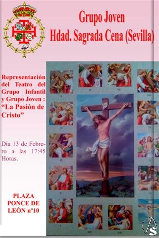 Arte Sacro. Hoy, sábado 13 de febrero, a las 17,45 horas, tendrá lugar la representación teatral "La Pasión de Cristo" realizada por el grupo joven e infantil de la hermandad.