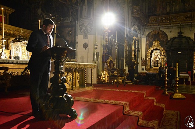 Arte Sacro. Sobrio y al estilo de la corporación de la Madrugada se desarrolló el acto, de una hora de duración, donde el Cristo del Calvario recorrió las naves de la imponente parroquia de la Magdalena, donde nada cambia y hace que el tiempo parece no haber pasado.