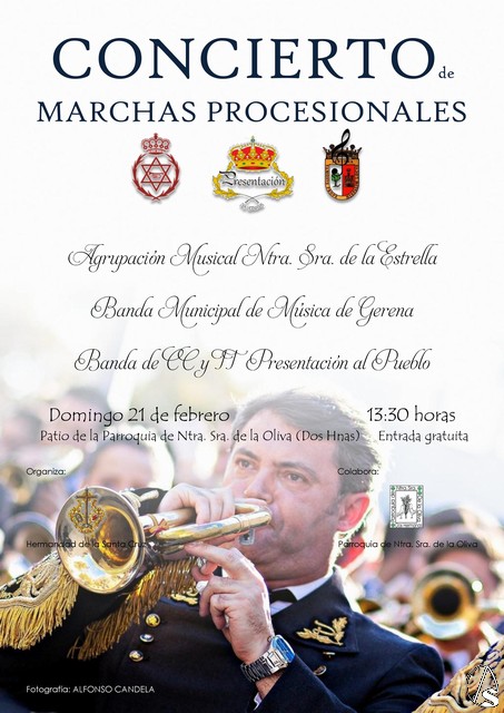 Función Principal de Instituto hoy domingo 21 de febrero a las 09:00 horas en la Capilla de la Santa Cruz. A su finalización, presentación del cartel LUNES SANTO 2016. Posteriormente, a las 13.30 horas, CONCIERTO DE MARCHAS PROCESIONALES en la Parroquia de Ntra. Sra. de la Oliva, organizando por la hermandad. Dicho Concierto contará con las siguientes formaciones musicales: