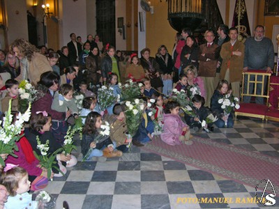 Manuel Ramírez. El pasado sábado los hermanos más jóvenes de la Hermandad de San Bernardo tuvieron la ocasión de reunirse ante la Virgen para hacerle una ofrenda floral y rezar una oración conjunta dirigida por el coadjutor de la Parroquia R.P. Don Adolfo Petit Caro. Alrededor de 100 jóvenes, la mayoría acompañados de sus padres y familiares, vivieron unos momentos especiales que a buen seguro no olvidarán, así como tampoco olvidaremos los mayores que pudimos disfrutar de estas escenas.
