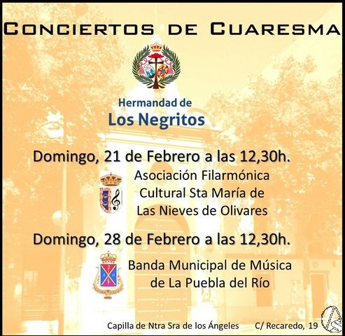 Arte Sacro. La Hermandad de los Negritos celebra durante esta Cuaresma dos conciertos de marchas procesionales en la capilla de Ntra. Sra. de los Ángeles, que serán: