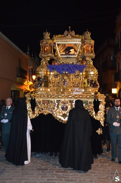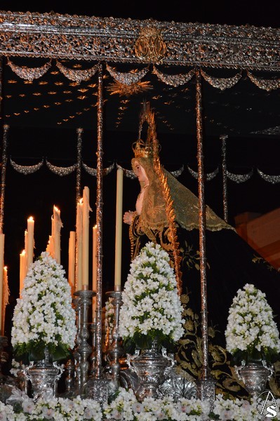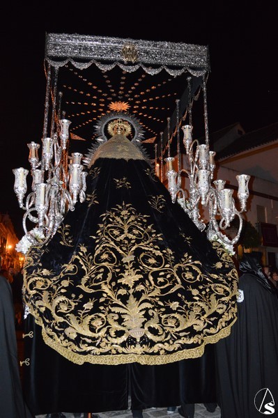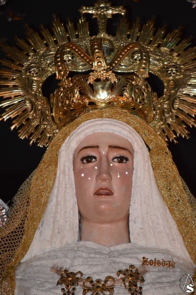 Cierra el cortejo Nuestra Señora de la Soledad, obra de Gaspar del Águila de 1570, que procesiona en bello paso de plata enmarcada en ráfaga del mismo metal. Destaca la entrada de la Santísima Virgen a altas horas de la madrugada ya del Domingo de Resurrección con las tradicionales moleeras e incluso por sevillanas que se han podido escuchar este año.