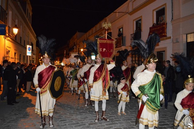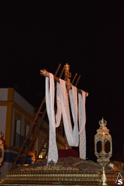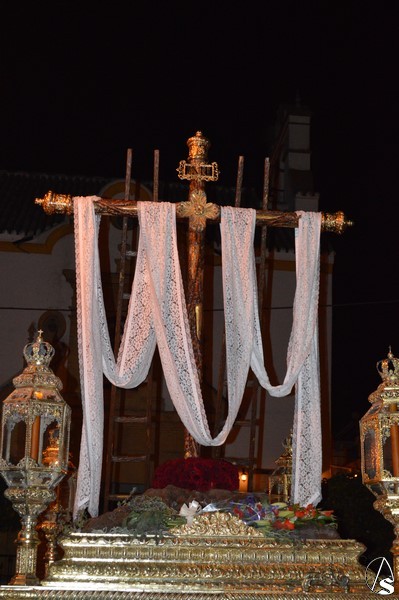 Manuel Pinto Montero. Marchena cerró su Semana Santa con la Estación de Penitencia de la popular Hermandad de La Soledad. Esta Hermandad presenta un sin fin de detalles a tener en cuenta. Tres son los pasos que procesiona. En el primero de ellos procesiona el Triunfo de la Santa Cruz. Tras ella el Cristo Yacente, obra del siglo XVII, acompañado de soldados romanos.