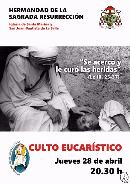 Arte Sacro. La hermandad de la Sagrada Resurrección realizará el culto eucarístico mensual en la iglesia de Santa Marina, hoy jueves 28 a las 20,30 horas como cada último jueves del mes.
