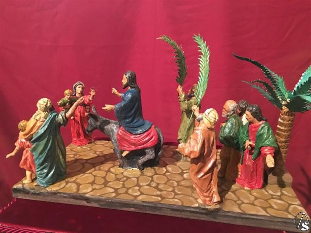 En total serán 11 las imágenes que acompañarán sobre el paso al Señor de la Entrada Triunfal. Los apóstoles Pedro, Santiago y Juan, que irán ahora al final del paso delante de la palmera. Estos irán antecedidos por dos hombres hebreos con sendas palmas que forman, entre sí, un arco, simulando la Puerta Dorada de Jerusalén por la que Jesús entró en la ciudad. El Señor sobre la borriquita será retrasado hasta casi el centro del paso, dándole mayor protagonismo y visibilidad. Junto al Señor irá un niño hebreo y delante de Él, abriendo la escena un hombre y niño hebreo en la parte delantera izquierda, y una mujer con dos niños, uno que se esconde tras sus ropajes y otro que lleva en brazos, en la parte delantera derecha.