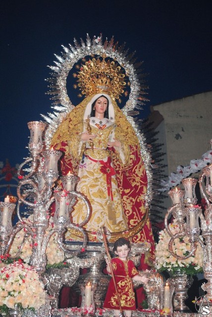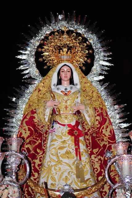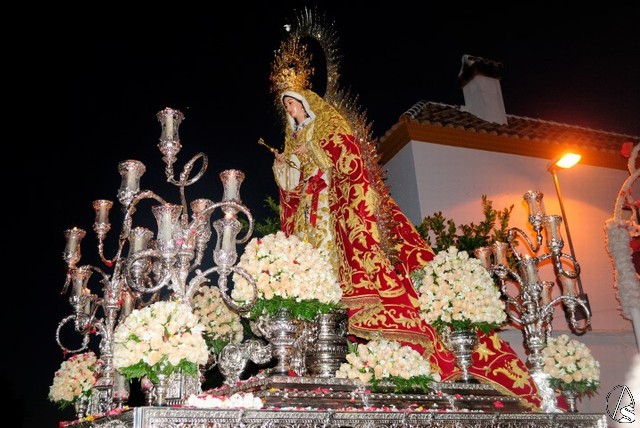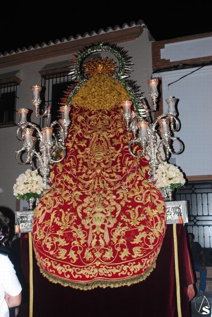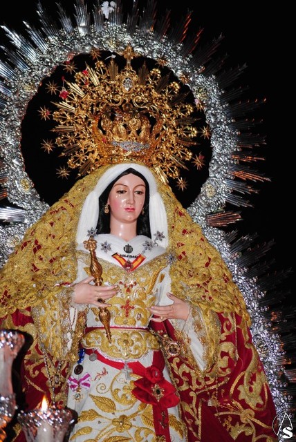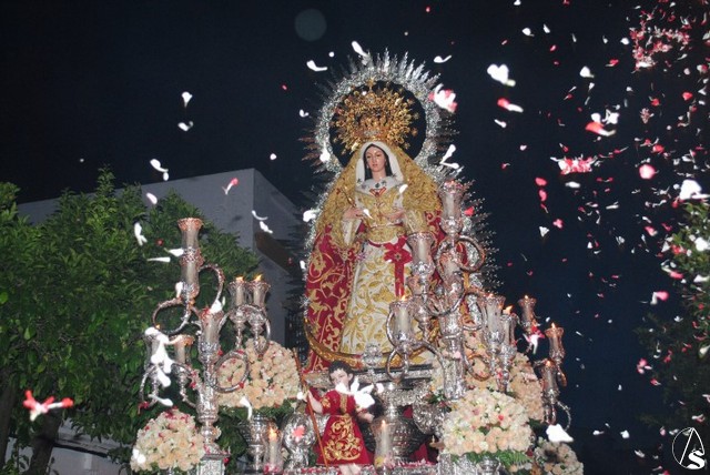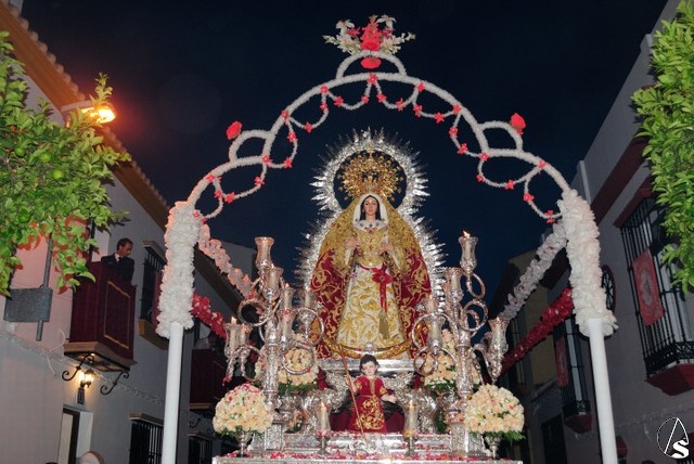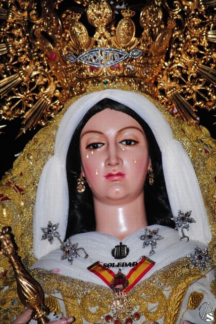 Eduardo Fdez. López. La Santísima Virgen de la Soledad recorrió las calles de Huévar del Aljarafe el pasado sábado día 11 junio con motivo de sus cultos gloriosos del mes de mayo aunque en esta ocasión y por la temprana fecha del Rocío estos cultos se han retrasado al mes de junio.
