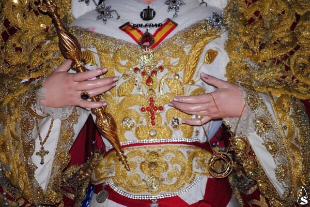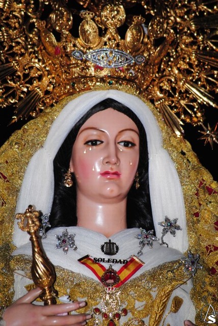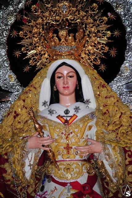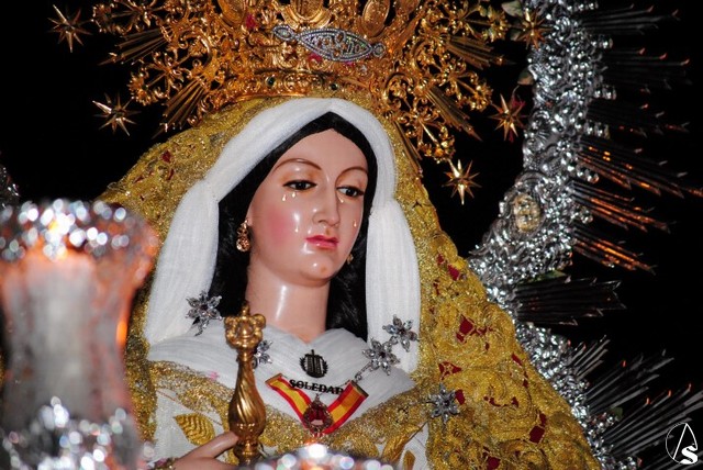 En esta procesión la Virgen de la Soledad es portada sobre paso de plata alumbrada por cuatro candelabros de guardabrisas y con sus atributos letíficos. En la delantera del paso la acompaña una imagen del Dulce Nombre de Jesús.