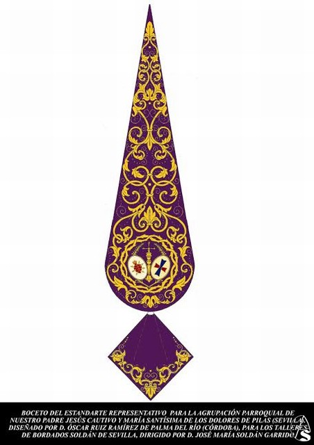 Arte Sacro. La próxima Cuaresma 2017, la Agrupación Parroquial de Ntro. Padre Jesús Cautivo y Ntra. Sra. de los Dolores, del municipio de Pilas, estrenará nuevo estandarte - guión bordado para su Estación de Penitencia, de la mano del bordador José Mª Soldán Garrido (Bordados Soldán-Sevilla) y con el diseño de Óscar Ruíz Ramírez (Palma de Río-Córdoba).