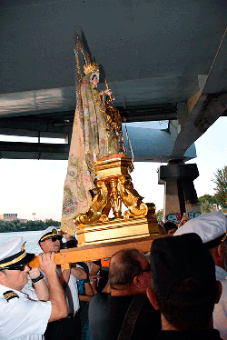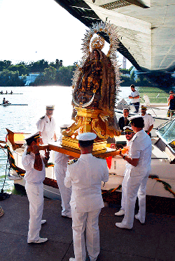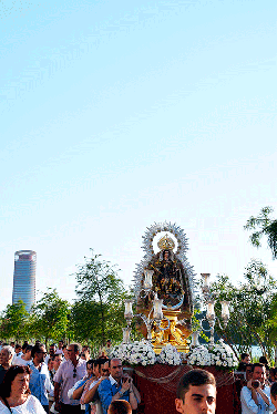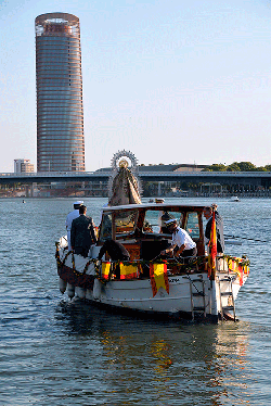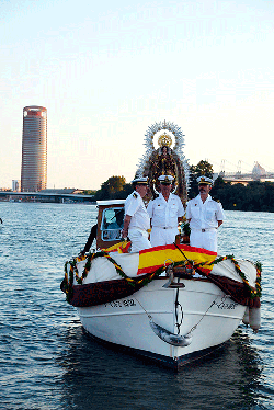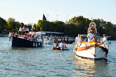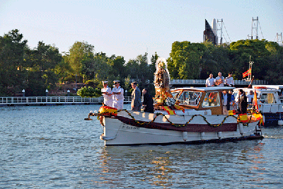 Galería. El río Guadalquivir festejó la procesión de la Virgen del Carmen de Calatrava. Antonio Rendón