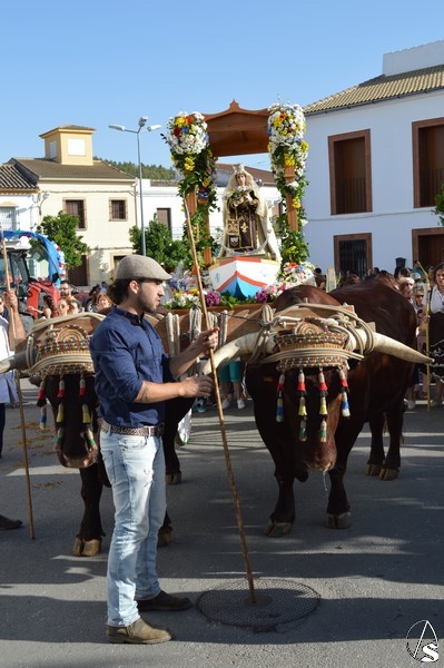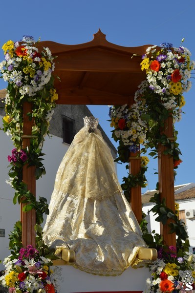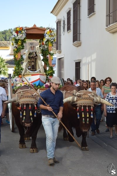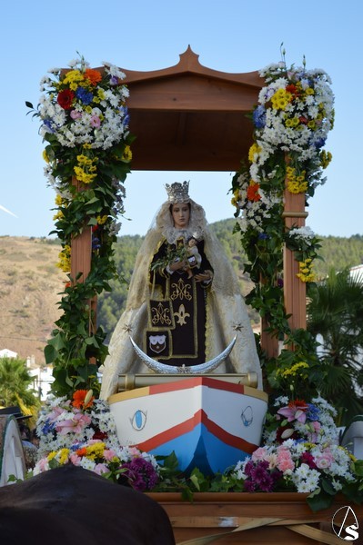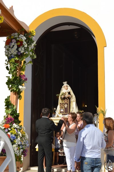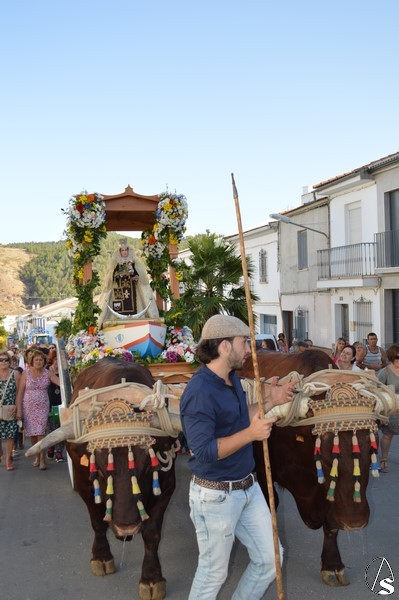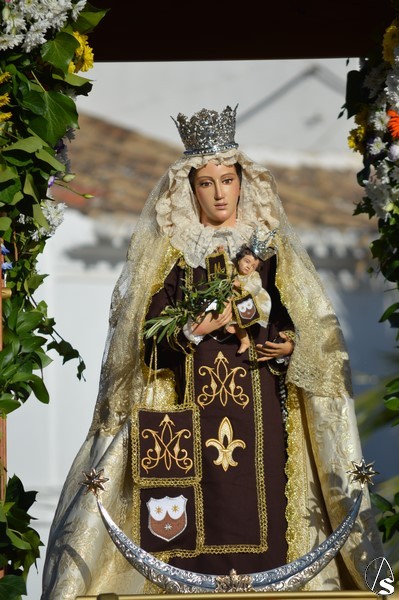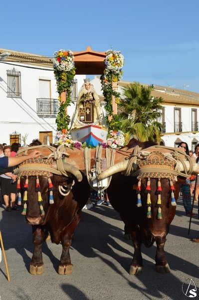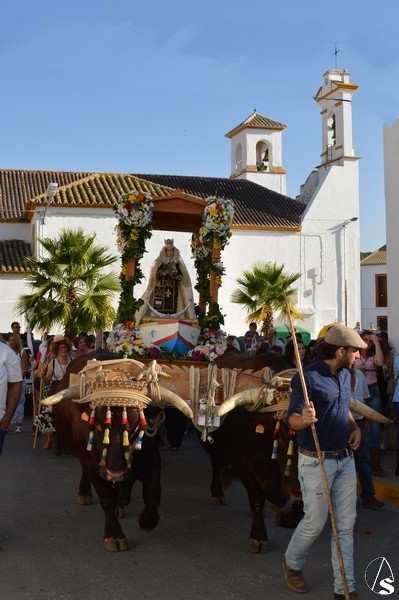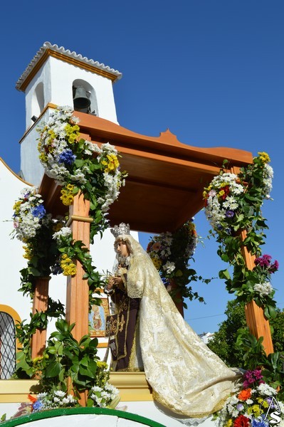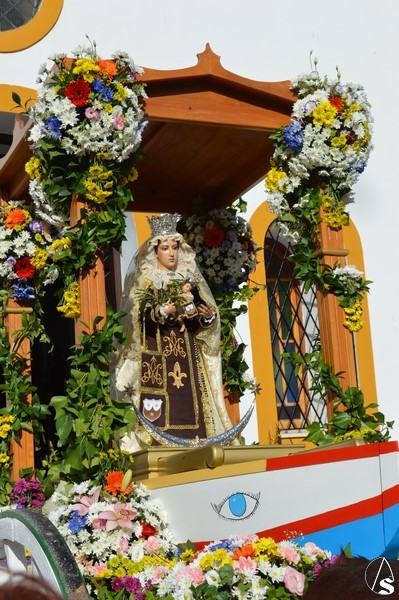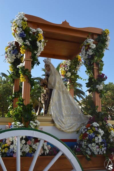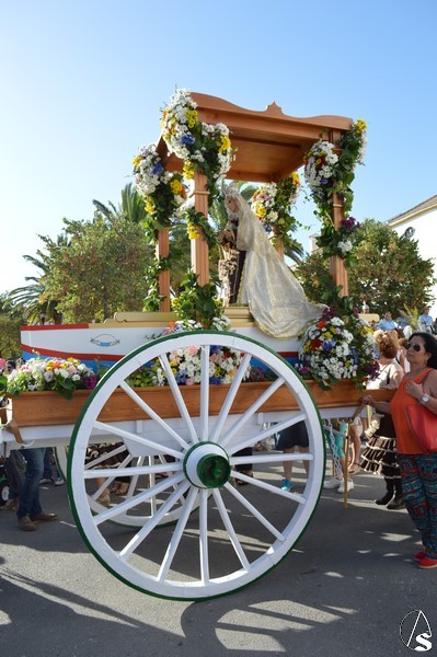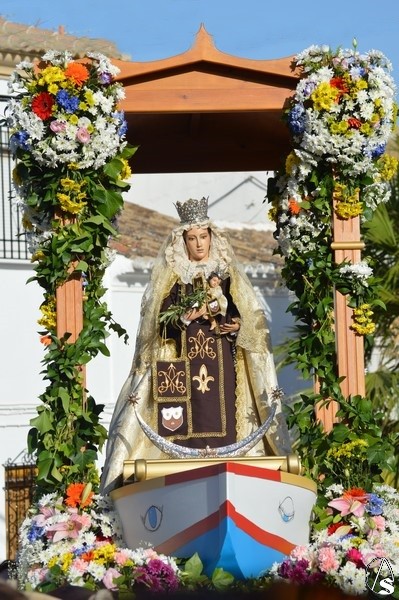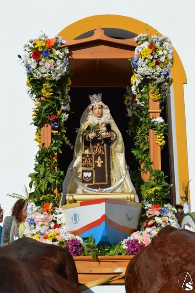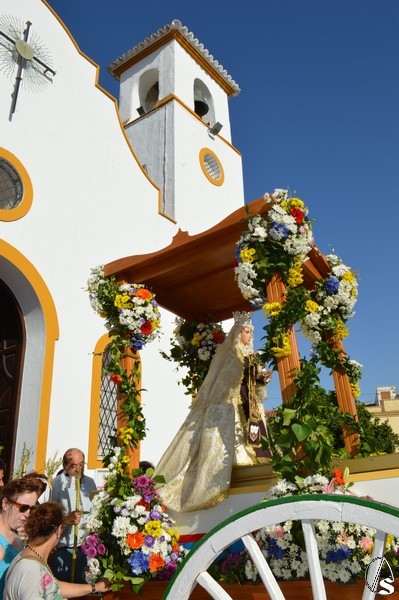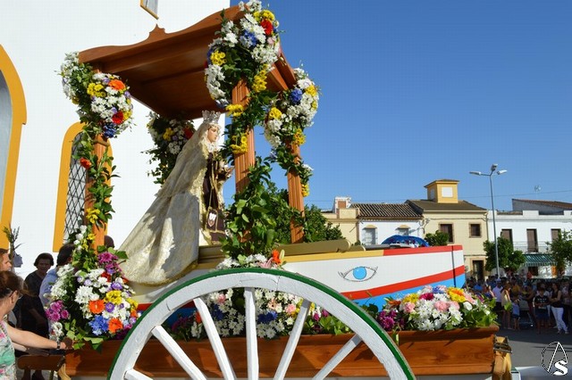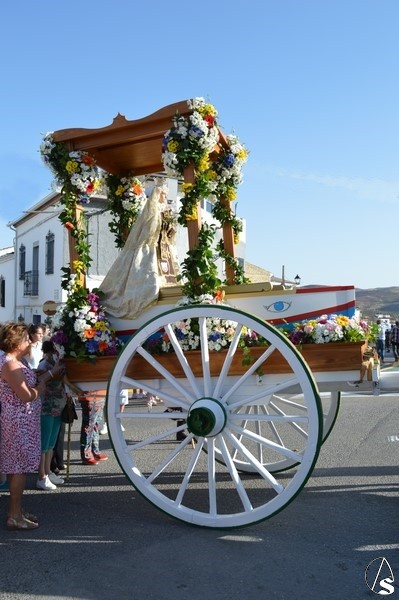 Nuestra Señora del Carmen, talla bendecida en el año 2014, fue portada en sencilla carreta de madera exornada con flores de distintas tonalidades y con la peculiaridad de contar con una barca de madera como peana para la Santísima Virgen. Entre ovaciones y sevillanas la Virgen del Carmen paseó por las calles de su pueblo en una jornada que ya se ha hecho tradicional en Martín de la Jara acompañada de una larga caballería, así como numerosos devotos y algunas carretas tras la Santísima Virgen.