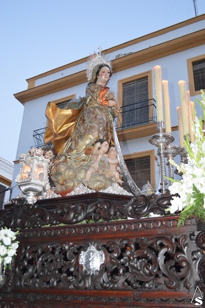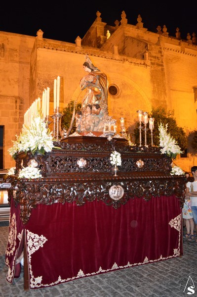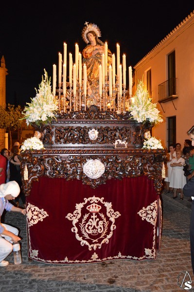 Numerosos devotos quisieron acompañar, en esa gloriosa mañana del 15 de agosto, Festividad de la Asunción de la Santísima Virgen, a la Virgen de la Aurora cumpliendo con una antigua tradición que la Ciudad de Lebrija sigue renovando cada mes de agosto.